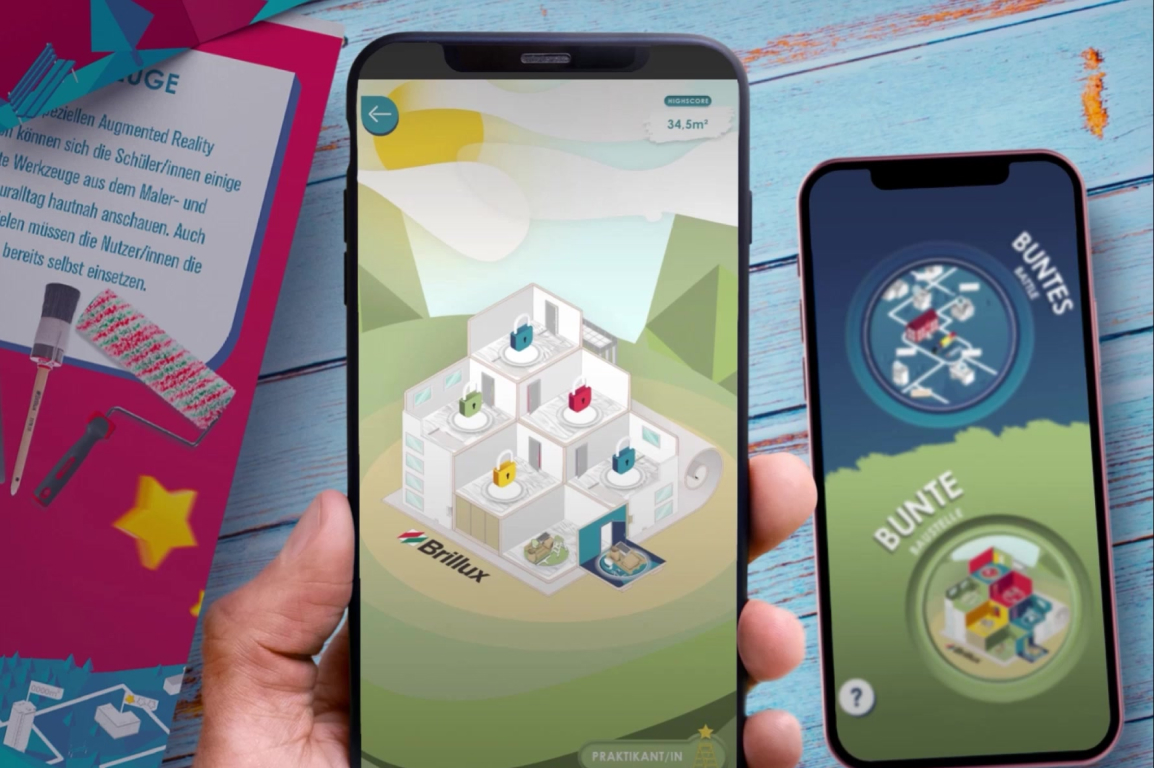 With the game app "Buntes Battle" and Instagram AR filters, we inspire Gen Z for creative craftsmanship at Brillux—in the classroom and on social media.