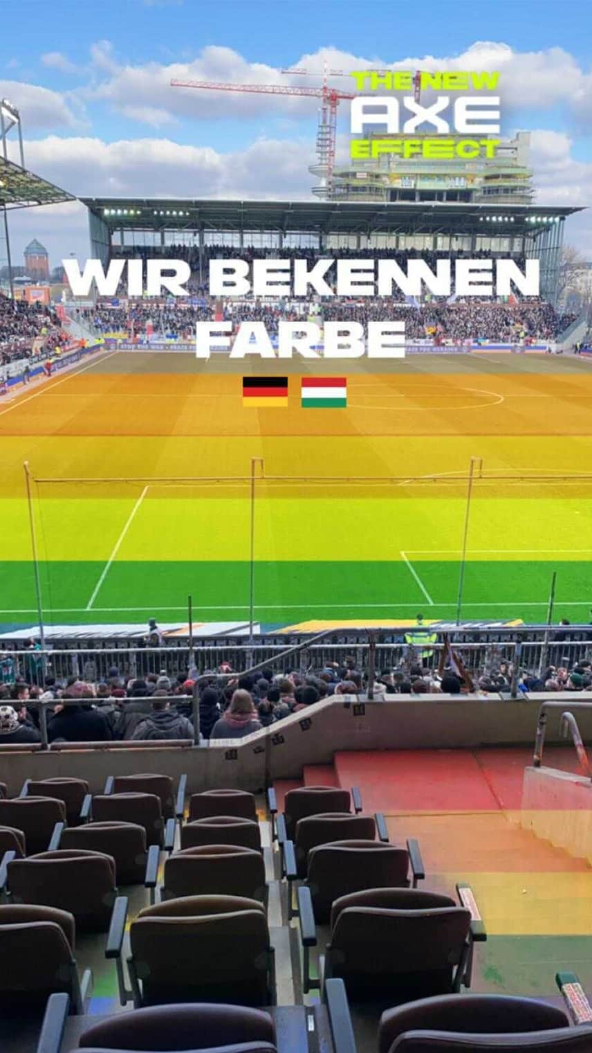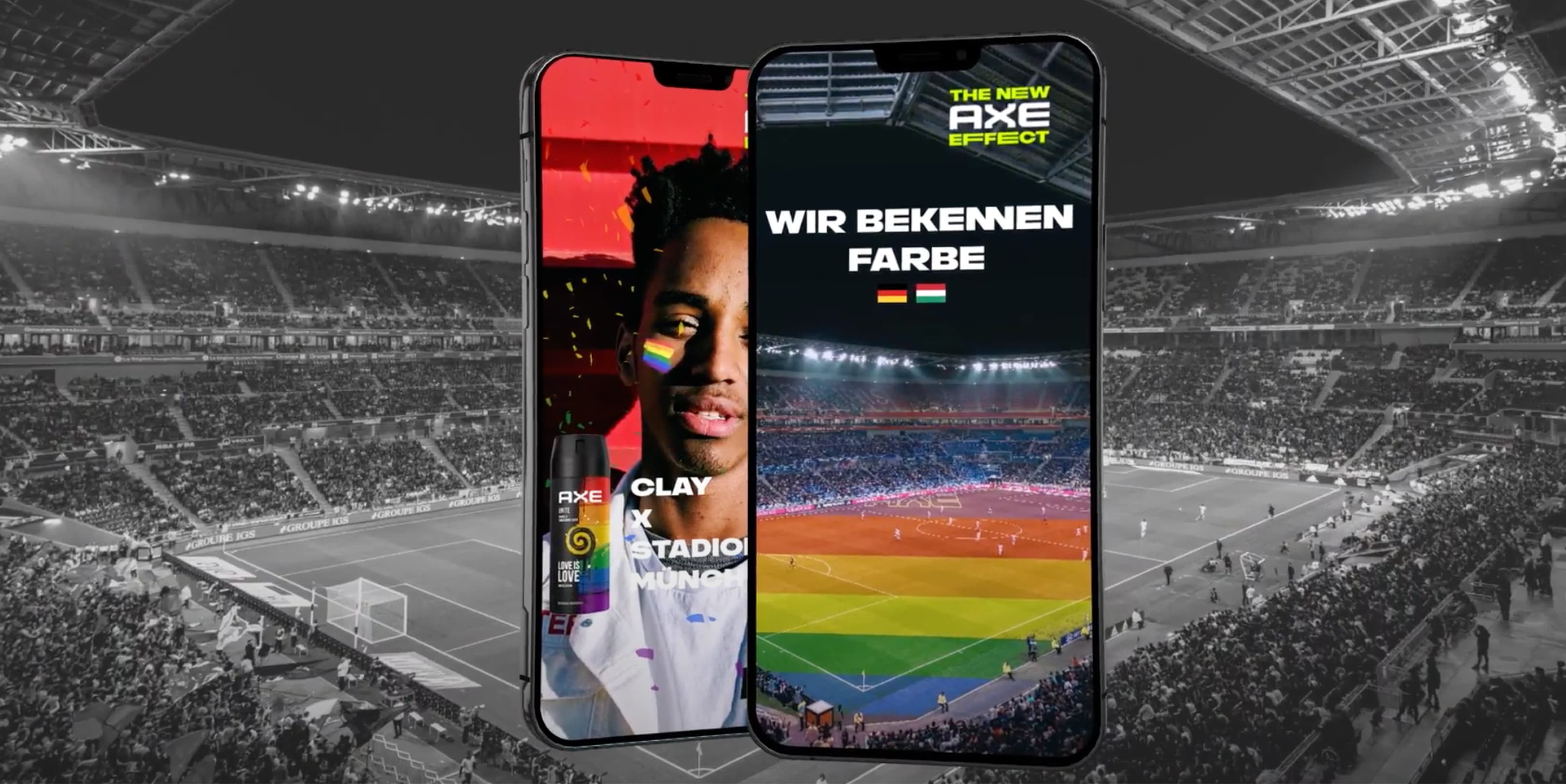 When UEFA banned the lighting of the German national stadium in rainbow colors for Pride in June 2021, AXE took a stand. We created an augmented reality lens in less than 24 hours, transforming the stadium into a rainbow flag and allowing fans to show their support.
