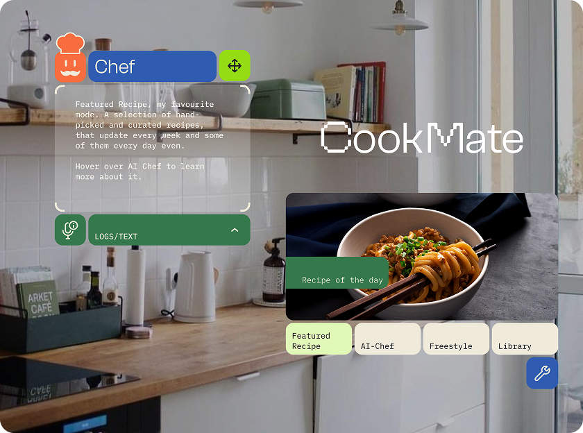 As part of the Spectacles Lens Fund, Snap Inc.’s premium R&D grant, we created Cookmate, an AI-powered cooking companion that redefines the kitchen experience. Using Augmented Reality and computer vision, Cookmate provides hands-free, step-by-step guidance directly in the user’s field of vision. This seamless support makes cooking intuitive, immersive, and smarter than ever.