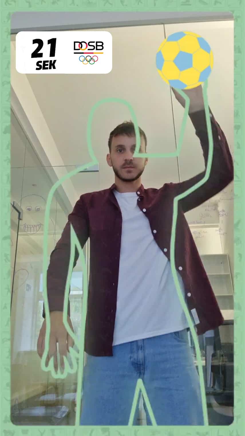 Created for the German Olympic Sports Confederation, we developed an engaging AR effect that invites users to unleash their inner athlete and experience the excitement of various Olympic sports firsthand. Users are challenged to replicate as many sports poses as they can within a 30-second timeframe to earn a medal. Sight set on gold? Play again.