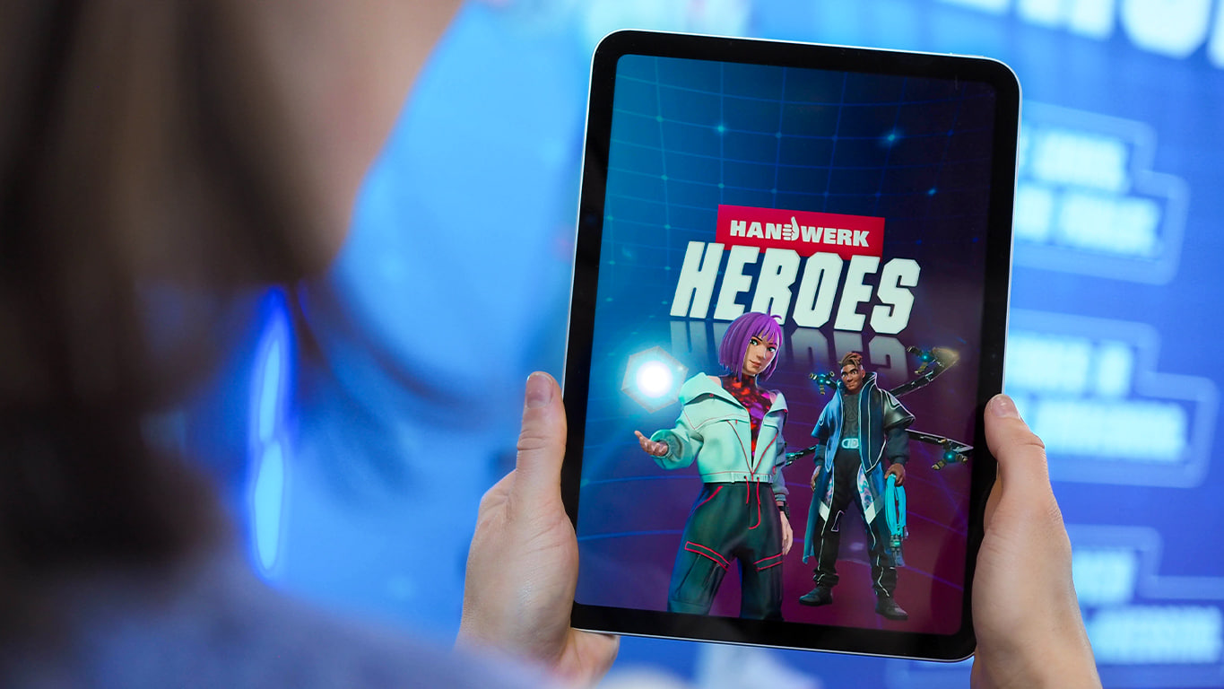 The impact: During career expos and beyond the app Handwerk Heroes creates a lasting touchpoint with vocational content around 136 skilled trades. The app fosters peer community and hands counselors a ready-made, playful tool to connect with their audience and open up the conversation.